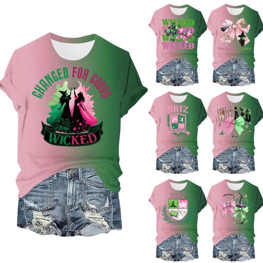 Women's Casual Printed T-shirt Round Neck Pullover Short Sleeve Top