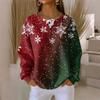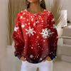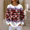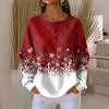 Women's Fashionable Casual Christmas Print V-Neck Long-Sleeved Button-Down Blouse