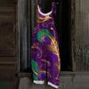 Women's Casual Jumpsuit Sleeveless Carnival Mask Print Loose Retro Overalls Jumpsuit