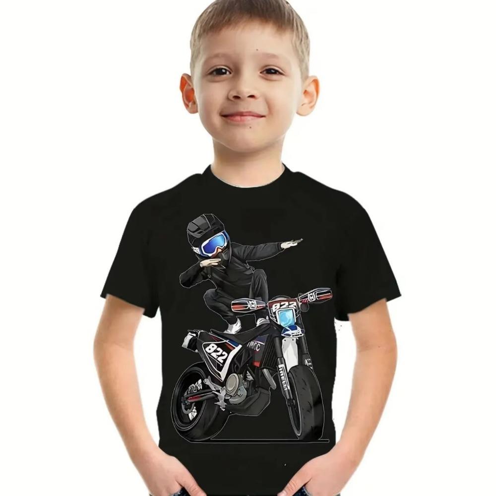 Motorcycle Rider Boy T-shirt 3D Printed Boy T-shirt Short Sleeved T-shirt Baby Summer Fashion Street