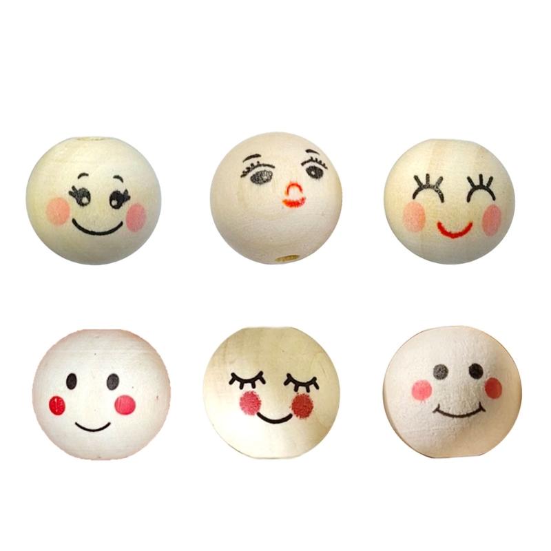 100pcs Wood Balls with Hole 20mm Smiling Face Head Ball Natural Wood Craft Bead for DIY Jewelry Making Macrames Handmade