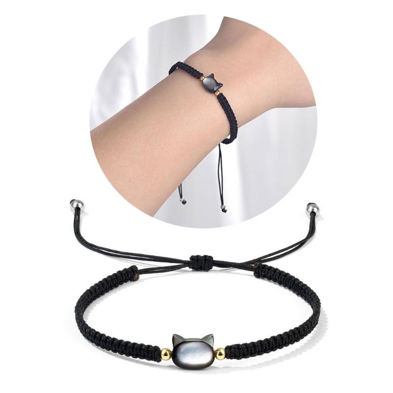 Natural Moonstone Obsidian Bracelet Unique Design Cat Charm Bangle Handwoven Wrist Link Chain Party Accessories for Girl