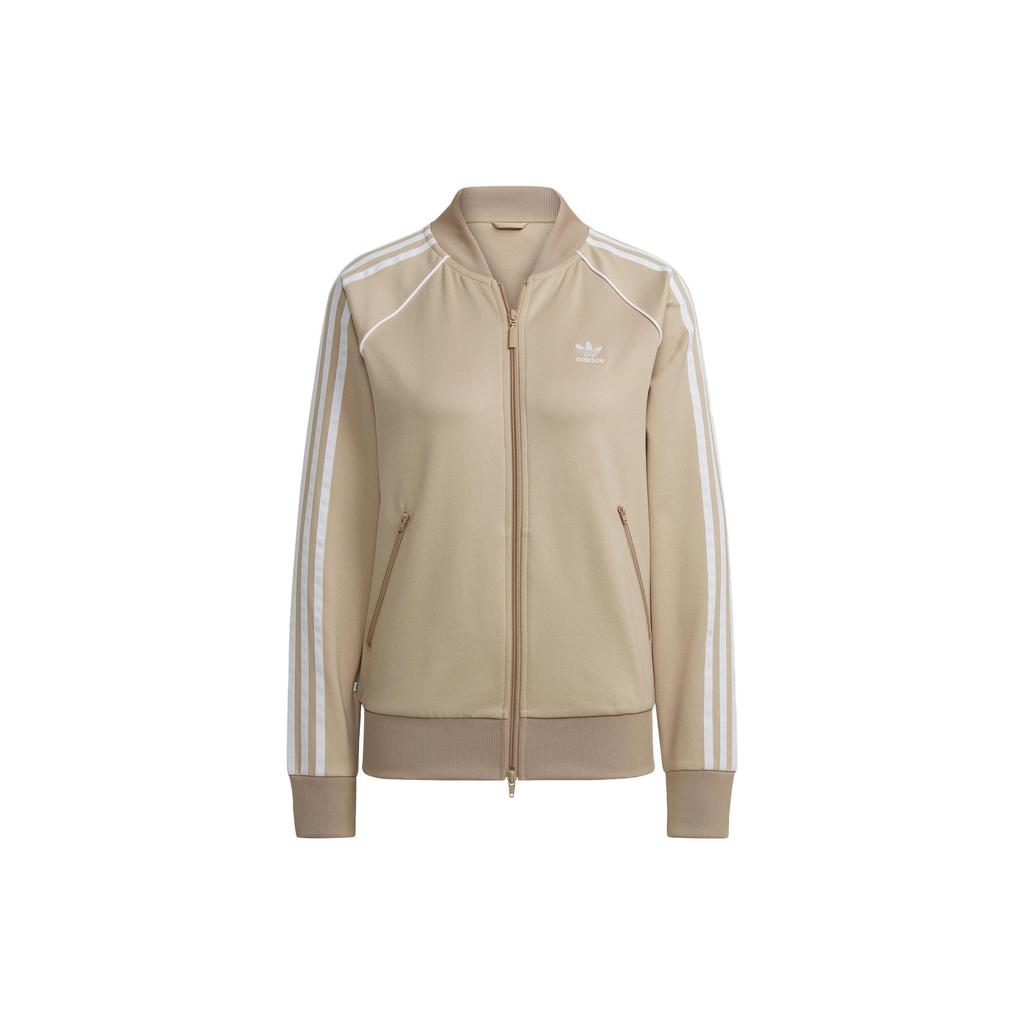 Adidas Striped Print Zip-Up Sports Jacket Women Outerwear Beige HS6765-250