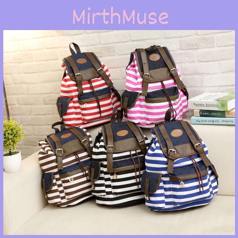 Durable Unisex Womens Stripes Canvas Backpack With Ample Storage For Daily Essentials