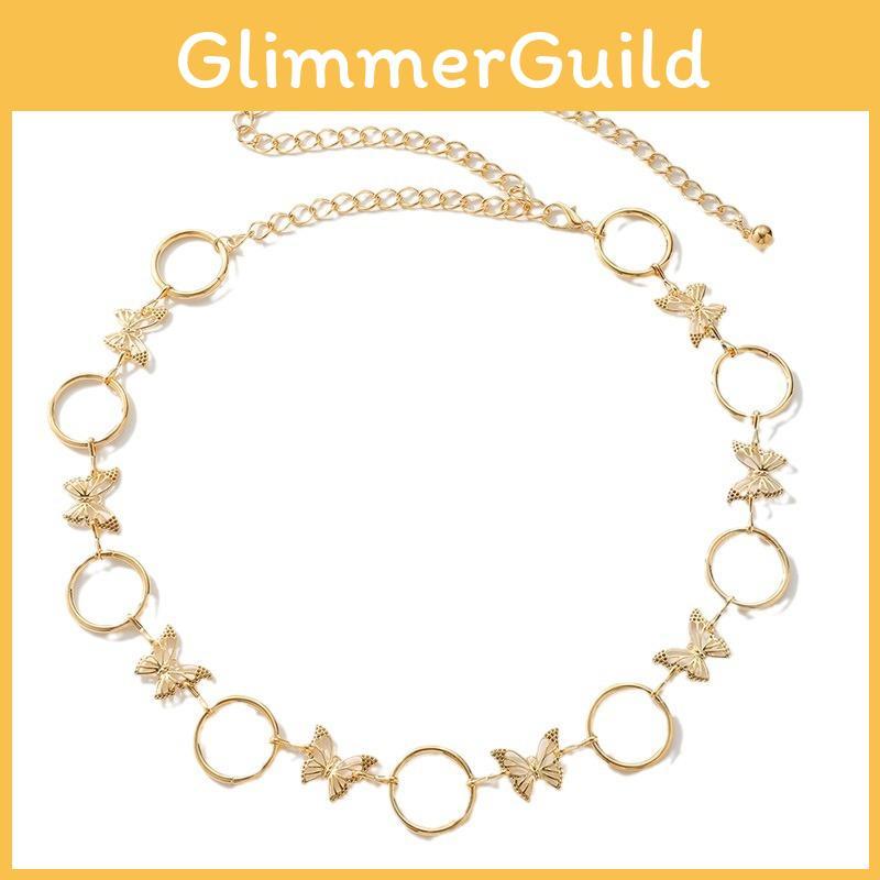 The Water Diamond Butterfly Waist Chain is a stylish accessory featuring a metal construction with water-diamond embellishments,Its adjustable lobster clasp ensures a secure fit. Made for women, it adds a chic touch to outfits across seasons. Wipe clean with a dry cloth for maintenance.