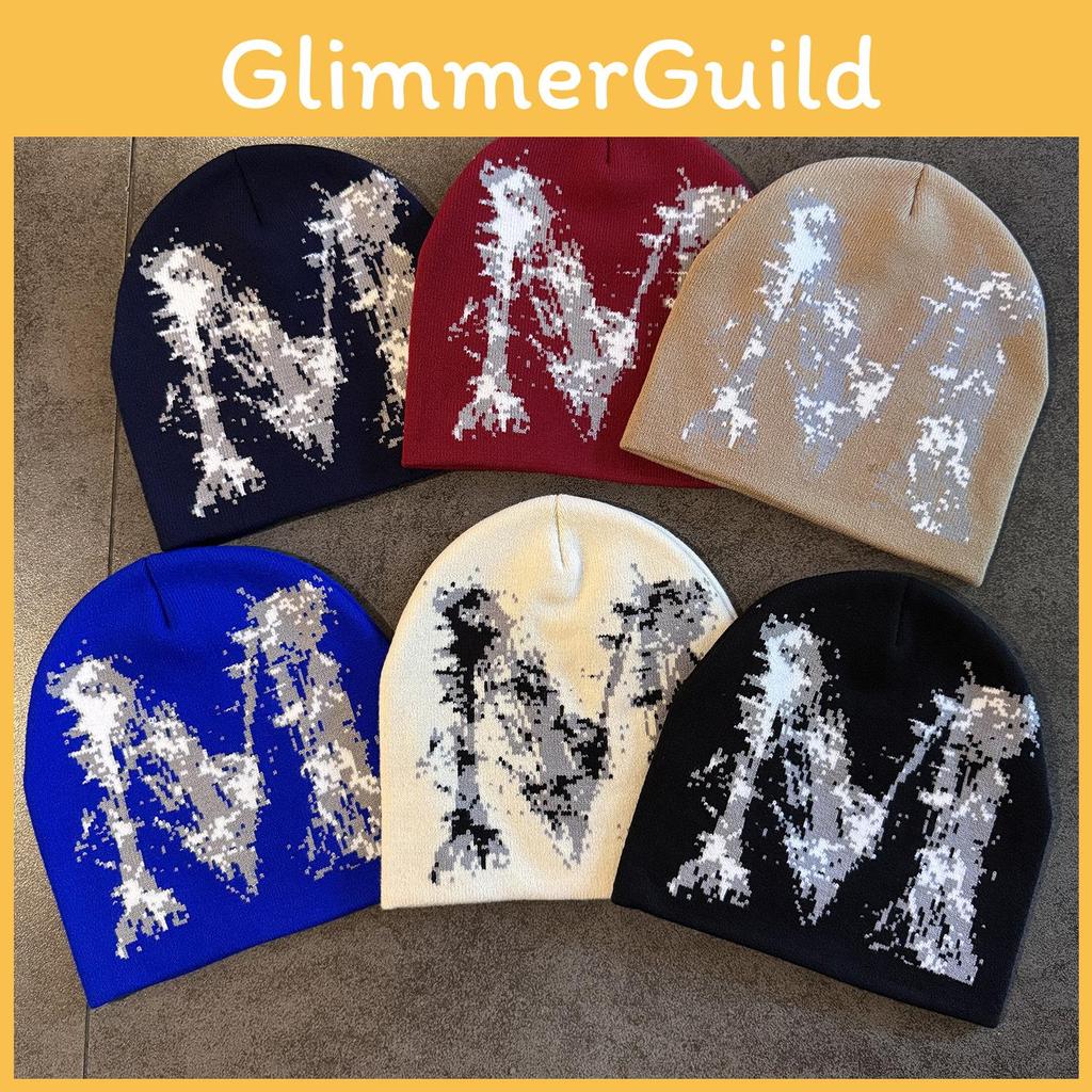 High Top No Brim Knit Cap With M Letter For Cozy Casual Wear