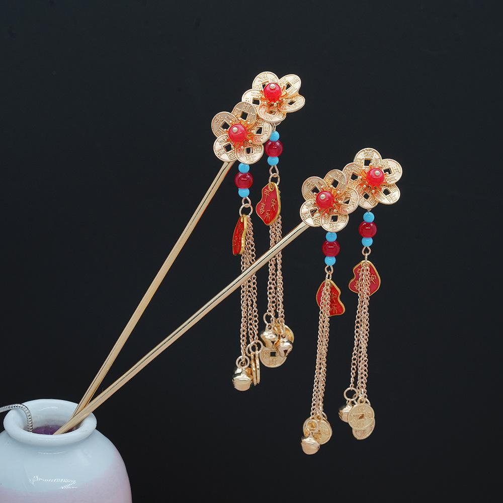 1pc Fashion Ancient Style Copper Coins Bells Tassels Hairpins New Chinese Style Money Flower Steps Hairpins Hanfu Headwear