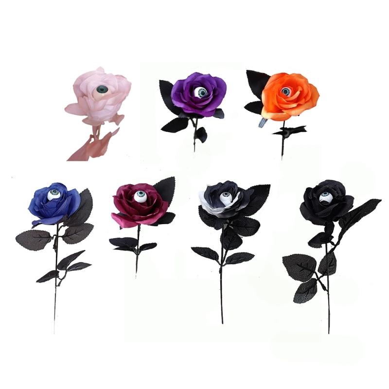 Halloween Fake Silk Rose Bouquets for Halloween Parties Home Wedding Decor Flower Artificial Roses Flowers with Eyeballs