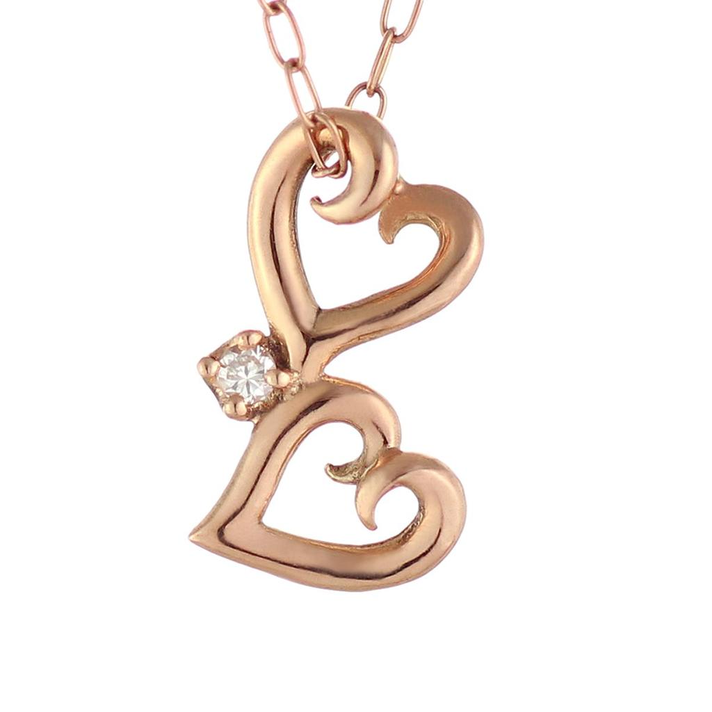 SUEHIRO Diamond Double Heart Open Heart Necklace In Pink Gold for Women