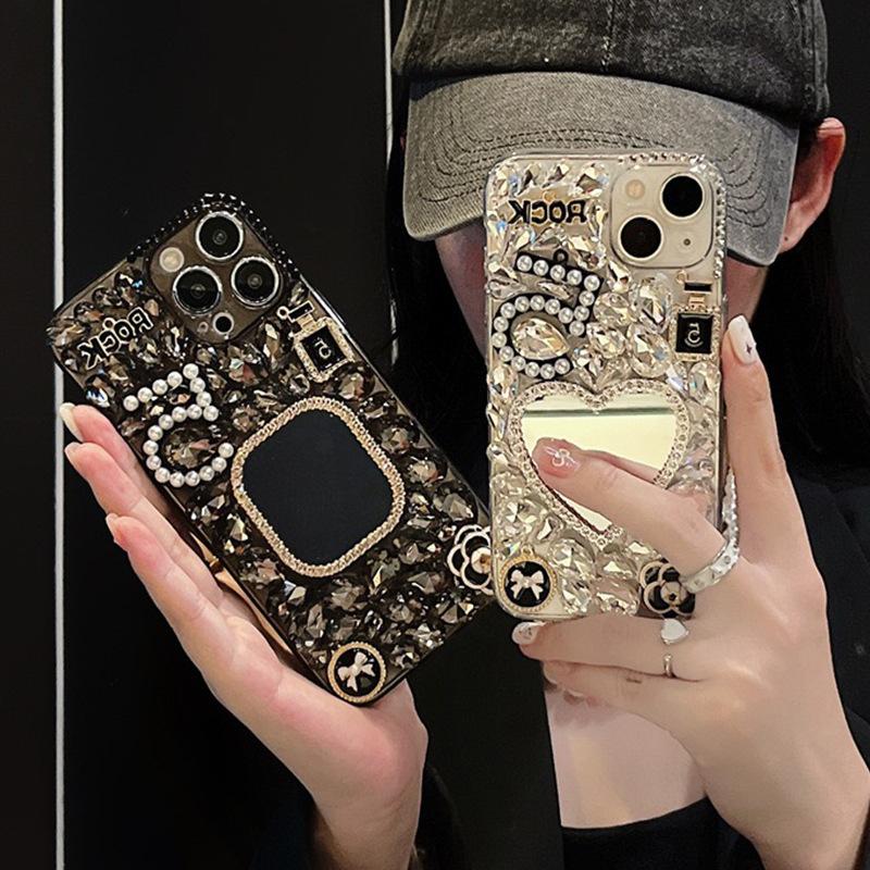 Rhinestone for IPhone16promax Mirror Phone Case for Apple 17 Letter Flower 14 Love Hard Shell Luxury