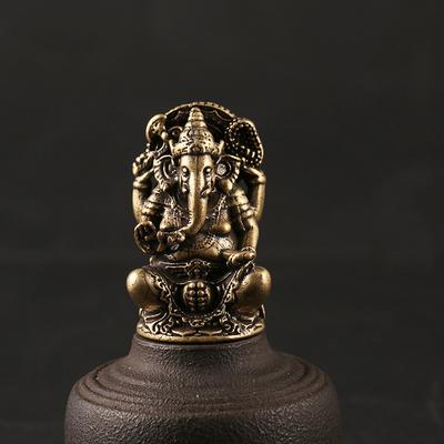 1PC Vintage Brass Ganesha Statue Pocket India Thailand Elephant God Figure Sculpture Home Office Desk Decorative Ornament Gift