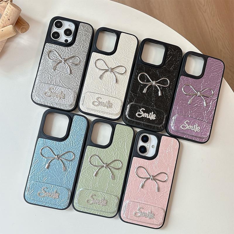 Bow Shaped Rhinestone Mirror Leather Phone Case for IPhone 16, Promax High-end 15, Niche for Apple 17