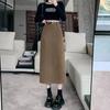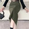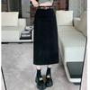 High Waist Slimming Retro Corduroy Midi Skirt Hip Concealing Straight Leg A- Line Wrap Around Skirt for Women Solid Color