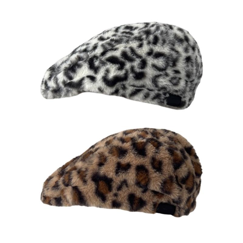 Popular Plush Leopard Beret Hat for Adult Painter Hat Spring Dome Hat Girl Photoshoots Hat Thick Warm Caps for Winter
