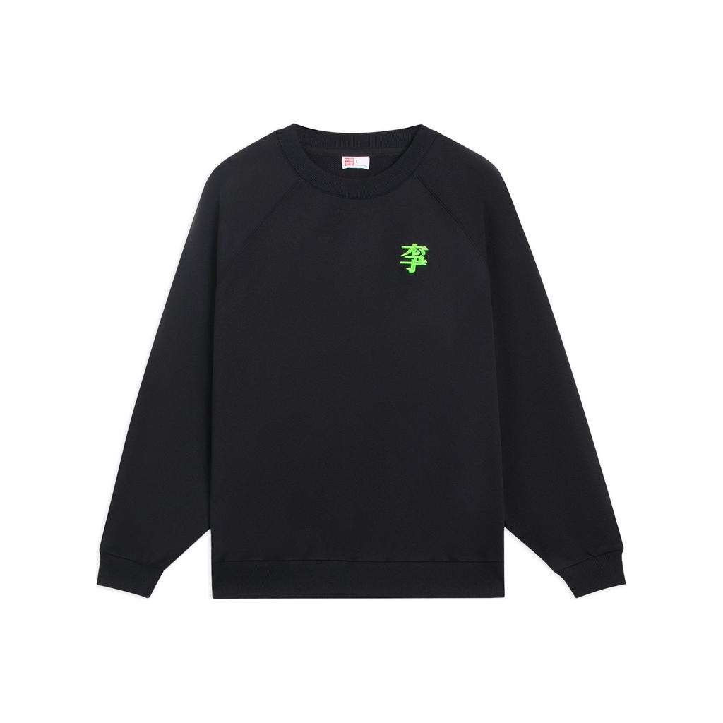 Li Ning China Series Solid Color Text Embroidery Loose Round Neck Pullover Long Sleeve Sweatshirt Unisex Sweatshirt Black AWDSD83-1