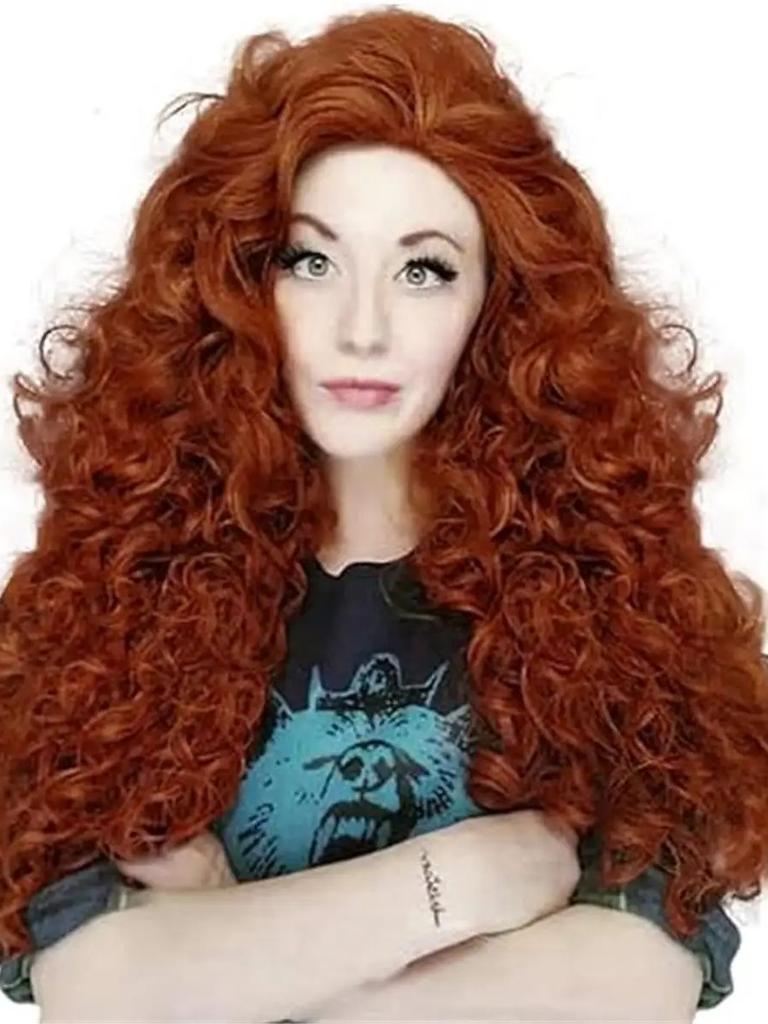 Red Brown Long Curly Hair Synthetic Wig Holiday Party Birthday Party Daily Wear