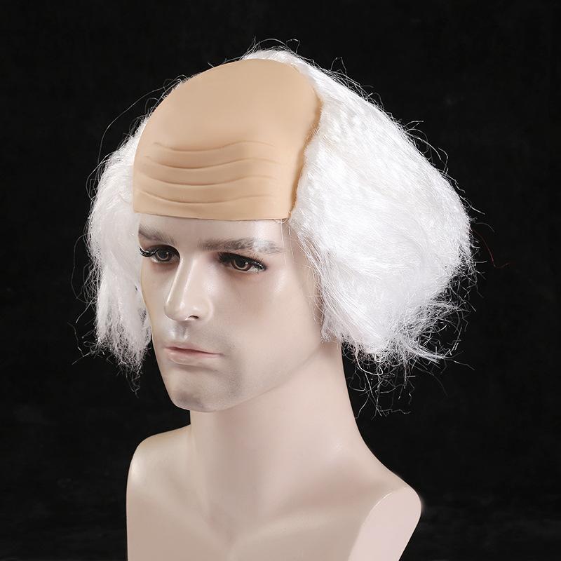 Halloween Cosplay Grandpa Artificial Synthetic Wig Props Funny Dress Up Bald Old People White Short Hair Headgear