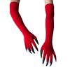 Women's Black Devil Claw Long Nail Gloves with Elastic Finger Design, Halloween Party Role Playing Costume Accessories