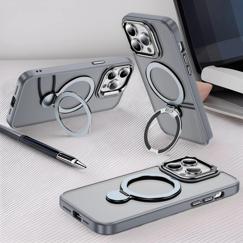 For Apple 15ProMax Mobile Phone Case, Magnetic Suction Shell, Retro Flat Skin-feel Fulcrum Rotating Bracket Mobile Phone Case