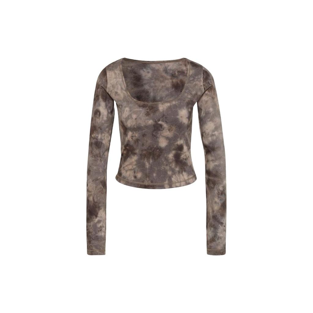 Adidas Tie-Dye Logo Print Cropped Long Sleeve T-Shirt Women Tops Brown HN9499
