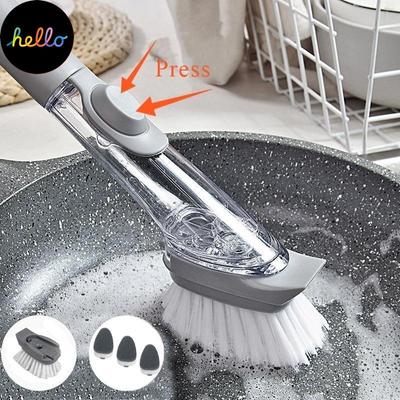 Kitchen Cleaning Brush 2 In 1 Long Handle Cleaing Brush with Removable Brush Sponge Dispenser Dishwas Ng Brush