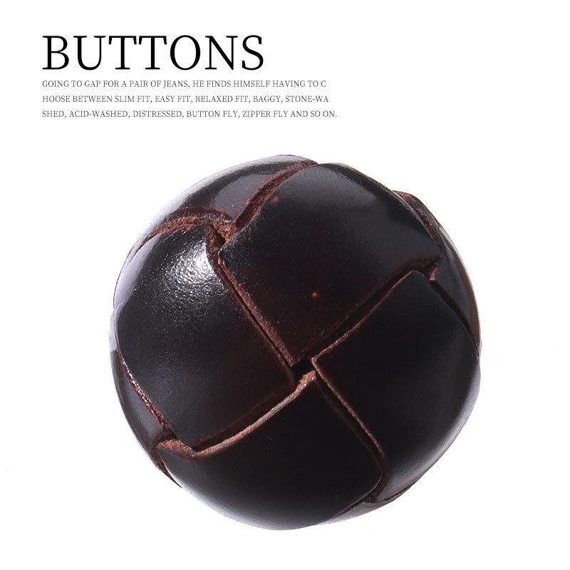 2pcs Hand-Woven Brown Leather Football Buttons, High-End Suit, Coat, Trench Coat, Black Button Buttons
