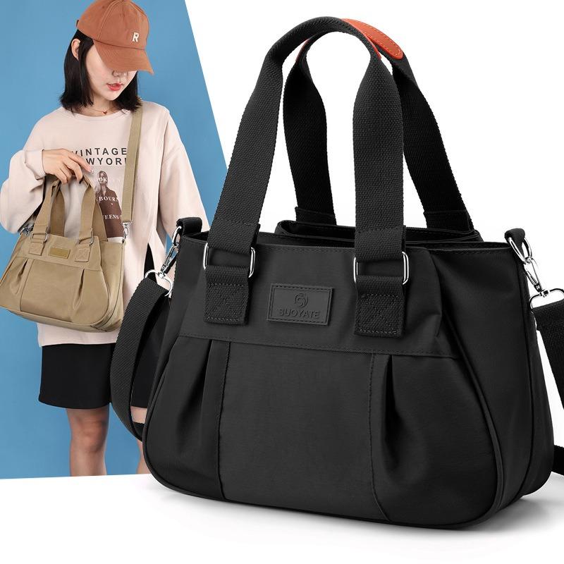 New Women's Shoulder Bag, Trendy Nylon Tote Bag, Large-capacity Mother's Hand-held Pleated Shoulder Messenger Bag.