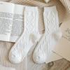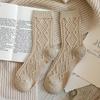 Women's Winter Wool Argyle Socks - Minimalist Japanese Retro Style, Mid-Calf, Solid & Dark Pattern for Autumn/Winter
