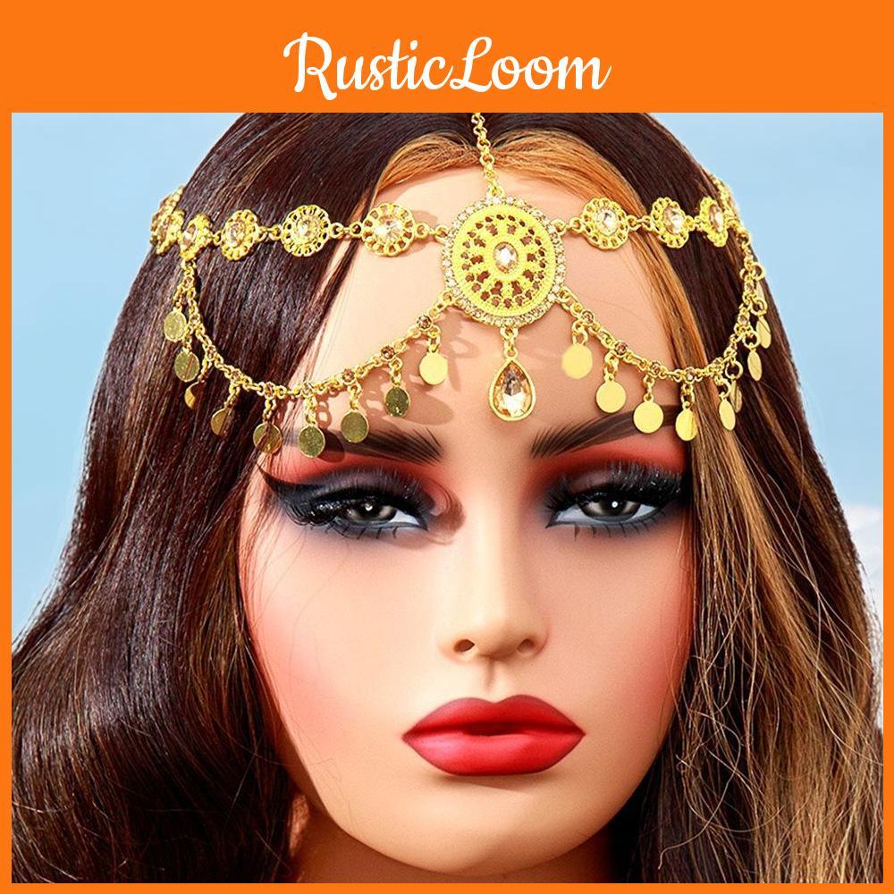Arab Bridal Headpiece Gold Alloy Crystal Embellished Dangle Head Chain For Wedding And Gift