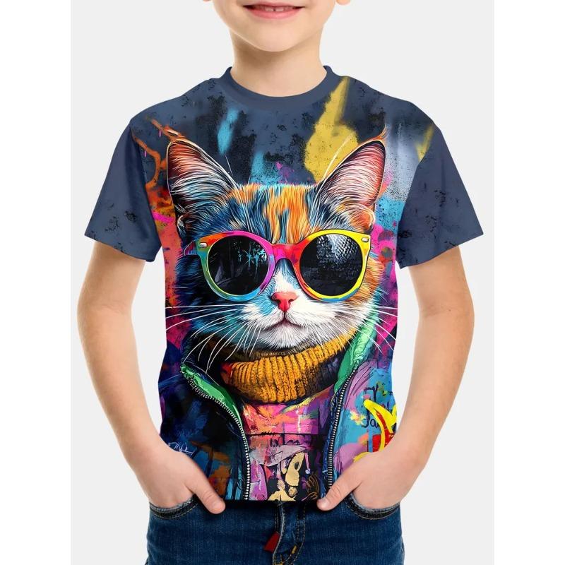 Soft Comfortable Children's Summer Round Neck Short Sleeved T-shirt Creative Color Fashionable Cool Printed Boy's T-shirt