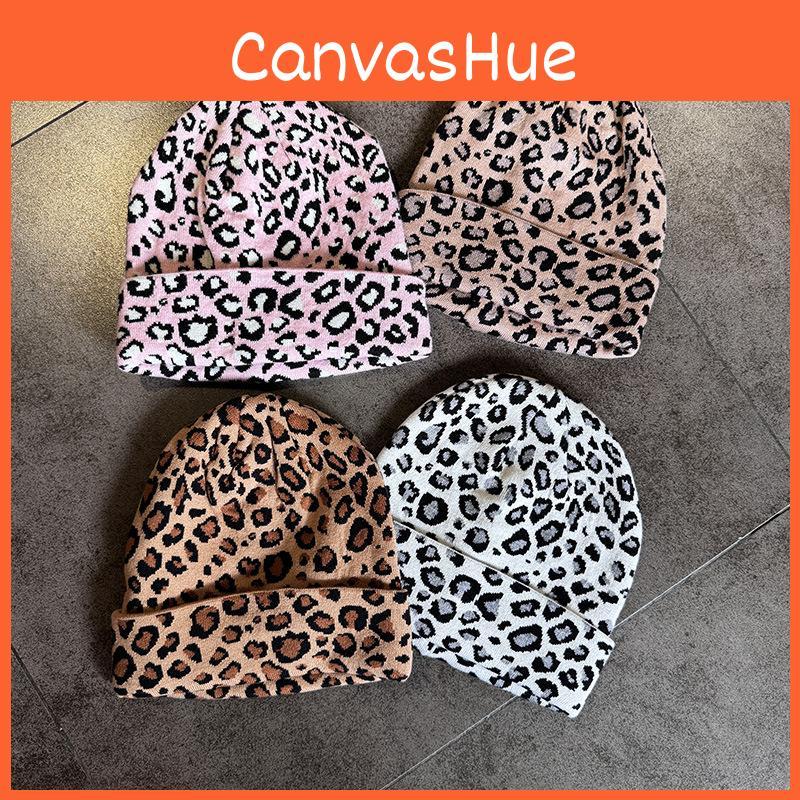 Fashion Knit Hat With Leopard Print Design For Women With Thick Thermal Material For Outdoor Use