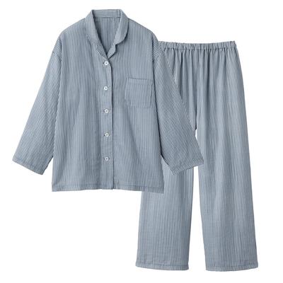 Jomoku Cotton Double Short Long and Soft and Comfortable To the Top and Bottom Comfortable for Summer Men's Pajamas, 100% Gauze, Sleeve, Sleeve,