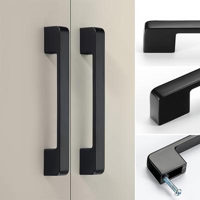 6pcs Black Aluminum Alloy Cabinet Pulls, American-Style Solid Kitchen Drawer Knobs, Furniture Hardware with Mounting Screws