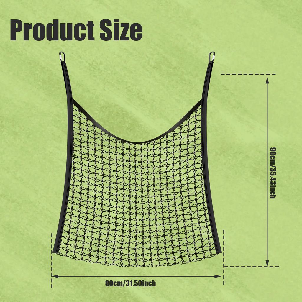 Easy to Install: With 2 handle loops on each end and 2 support straps in the center, this hay feeder net can be easily attached to stalls, trailers, walls, fences and more
