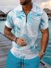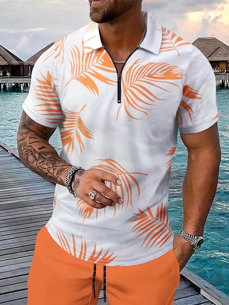 Fashion Zip Polo Shirts Men's Hawaiian Beach Vacation Short Sleeve Polo Shirt Outfit Street Casual