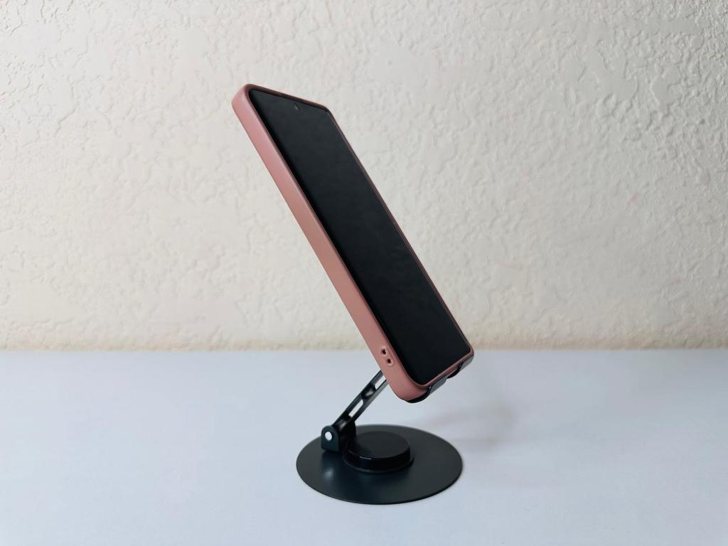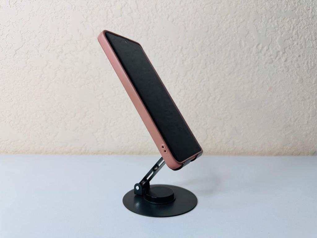 This stand is miserable, very small and very light, especially for the s23 ultra I have, it's rubbish, plus the silicone pads weren't glued on, you had them in a little bag inside to stick them on myself, plus silicone pads were missing from the bottom of the stand that rests on the table, rubbish when we say rubbish rubbish, I hope no one buys it for large phones, it's not suitable and the one star I gave is generous
