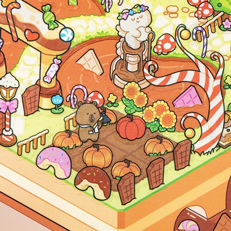 Transform your creative project with our Fun 3D Miniature Scene Cartoon Sticker, featuring vividly chocolate factory and rainbow land miniature scene designs that add unique charm to any art craft, great for crafting unique and fun display.