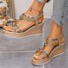 Women's Wide Width Bohemian Sandals, Beaded Wedge Heel Platform Shoes, Ethnic Style Summer Mules for Women