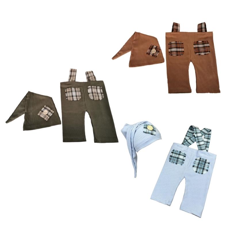 Baby Photography Props Overalls and Hat Outfit Photo Shoot Clothes Breathable Baby Infant Photography Costume Clothing