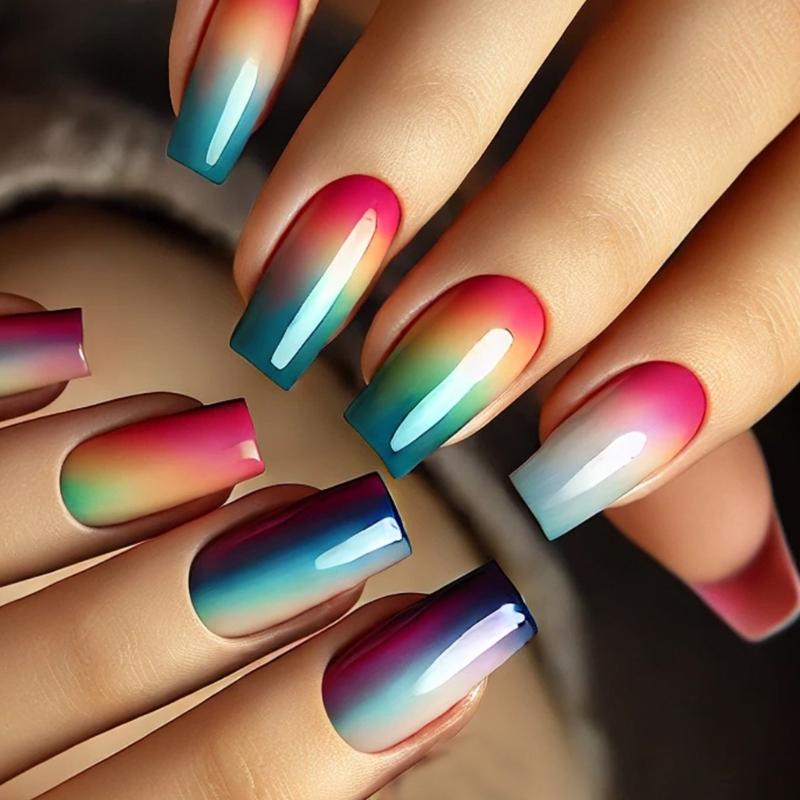 Square Press On Nail Gradient Designs Fake Nail Glues On Nail Artificial Acrylic Nail 24pcs Stick On Nail for Women