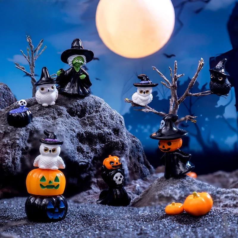 Mini Halloween Ornament Miniature Cartoon Witch Ghost Pumpkin Figurine Car Interior Desktop Decor Witch Pumpkin Small Ornaments