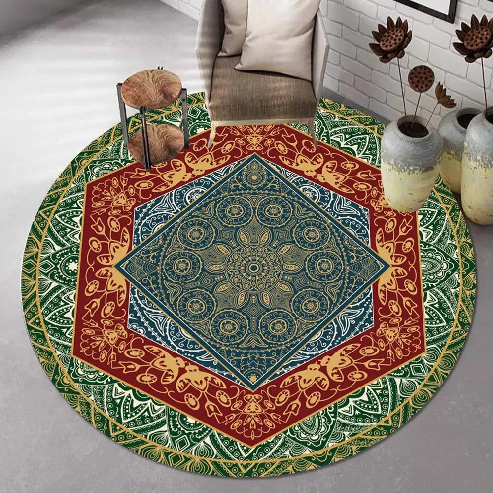 Bohemian Mandala Round Carpet Ethnic Style Vintage Floral Rug Living Room Coffee Table Sofa Mat Bedroom Hanging Basket Chair Mat