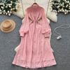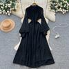 French Court Style Dress Women's Autumn High-end Single-breasted Waist and Thin Temperament Lace Long Dresses