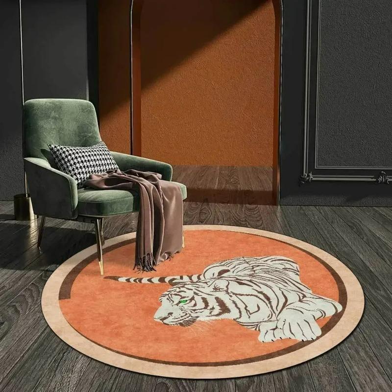 Lion Elephant Round Carpet Home Sofa Coffee Table Area Rugs Non Slip Floor Mat for Living Room Kitchen Bedroom Decor Washable