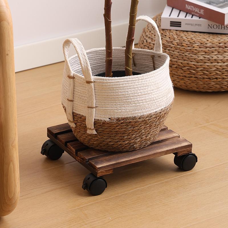 Solid Wood Planter Tray Potted Stand Rack Bonsai Round Wheel Flowerpot Wooden Holder