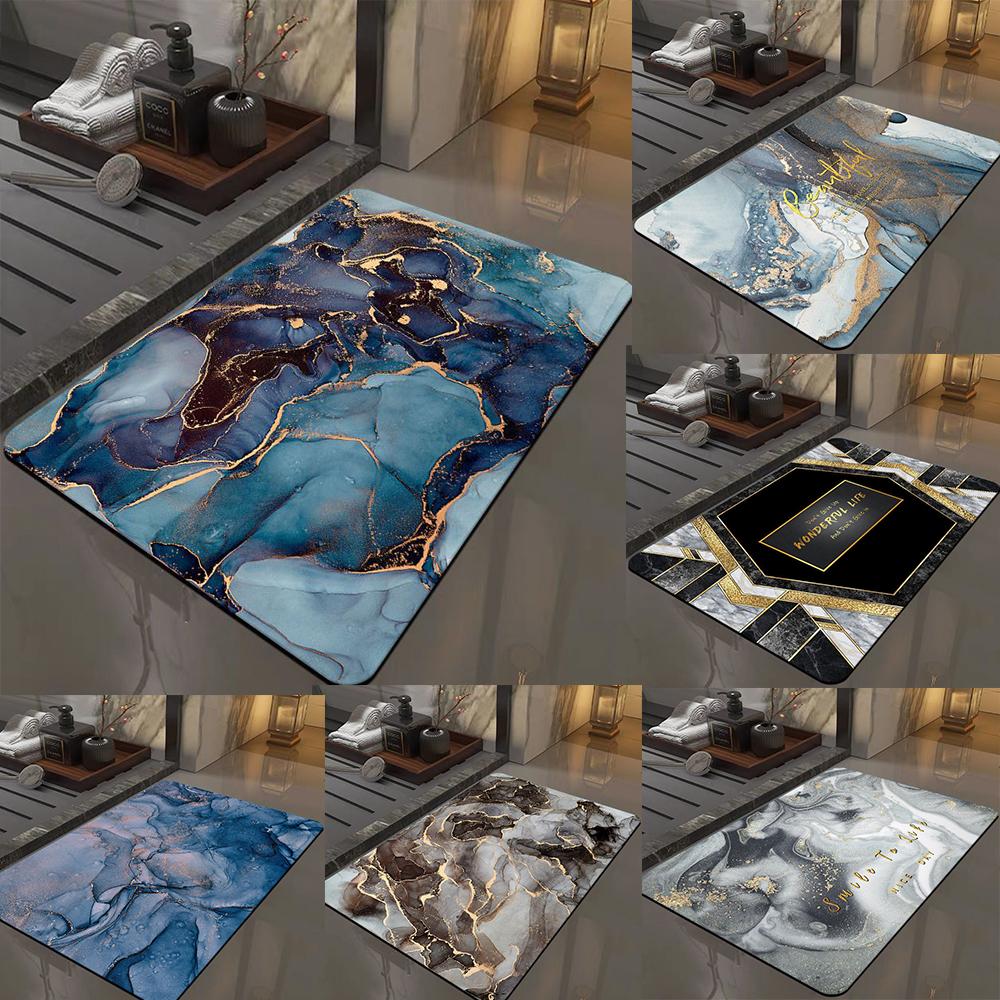 1pc Modern Marble Printed Diatom Mud Carpet Absorbent Quick-drying Bathtub Mat Doorway Decorative Entrance Bathroom Accessories