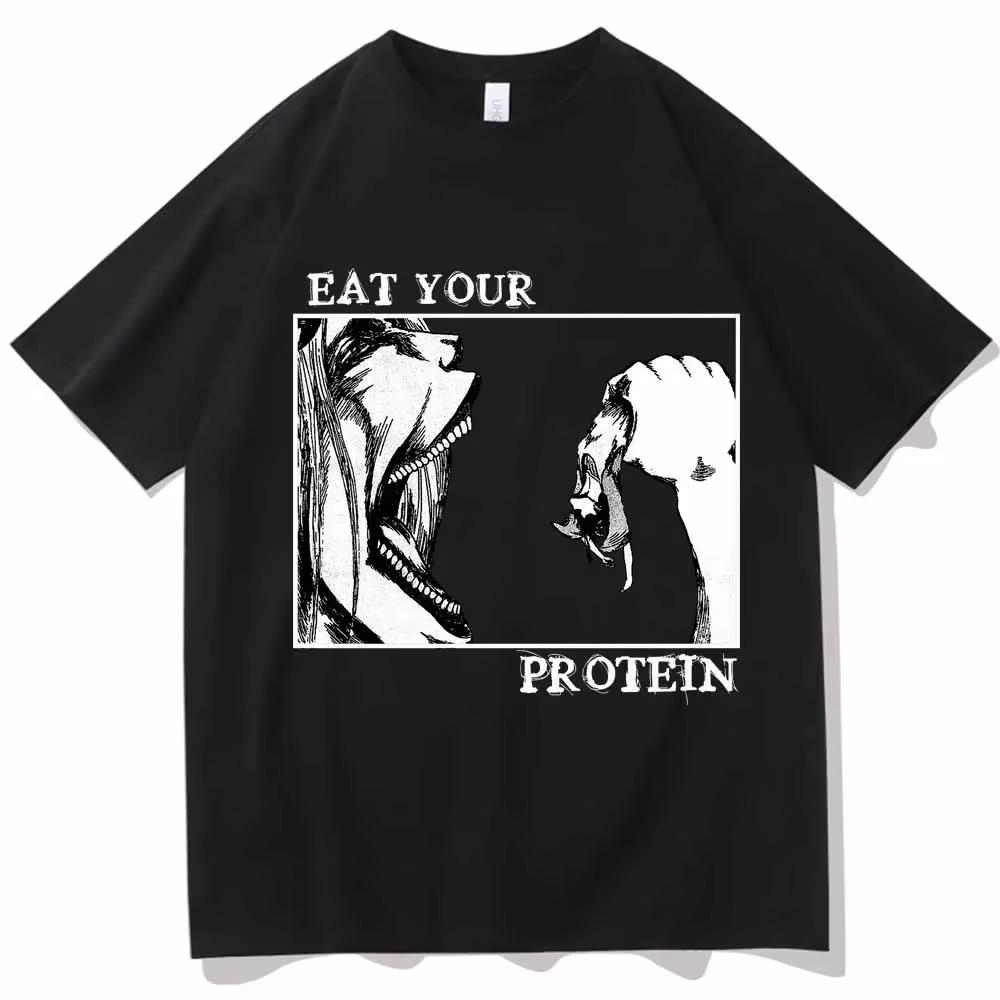 2025 Summer New T-Shirts Eat Your Protein Shirt Man Women Summer Casual O-Neck Short Sleeve Shirts Shirts for Men Off White