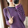 Women Cotton Sweater Curled O-neck Strip Pullover Autumn Winter Casual Knit Clothing Fashion Soft Bottoming Sweater Tops