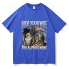 Hide Your Wife The Alpha Is Here Funny Werewolf Meme Graphic T-shirts Men's Fashion Hip Hop Casual Cotton Short Sleeve T Shirts