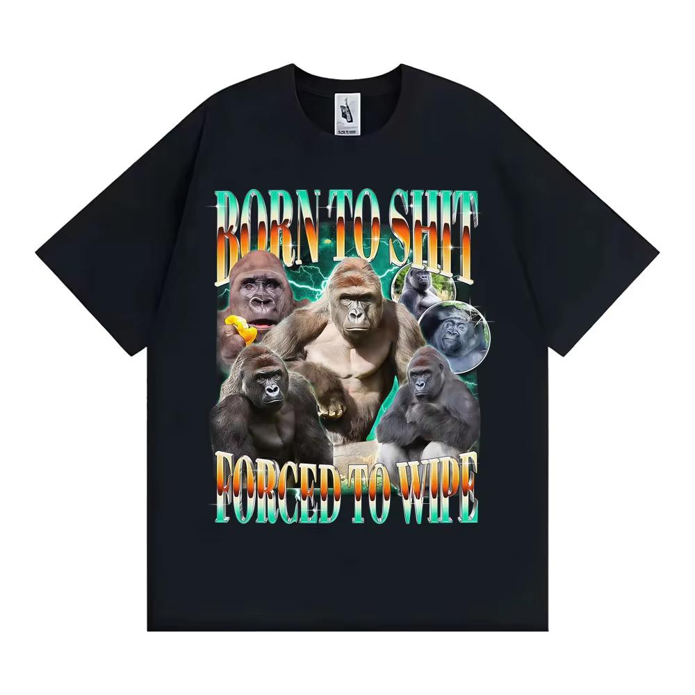 Funny Gorilla Meme T Shirts Born To Shit Forced To Wipe Y2K Aesthetic T-shirt Men Women Summer Tops High Quality Cotton T-shirts